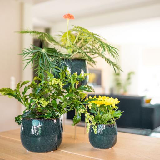 Suchen Sie nach einem eleganten Hingucker statt dem gewöhnlichen matten Design? Lassen Sie sich von den handgefertigten Keramiktöpfen der TS Indoor Kollektion begeistern. Mit ihrer strahlend glänzenden Oberfläche setzen sie edle Akzente in jedem Raum. Ganz besonders sticht dabei die Edition Kaat hervor, die mit ihrem tiefen Tannengrün und dem edlen Glanz-Finish jeden Blick auf sich zieht.