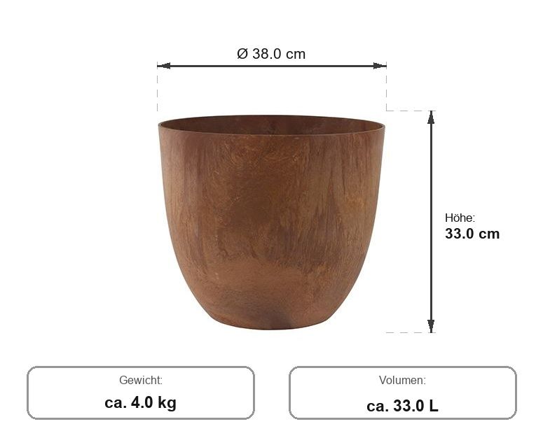 Artstone Bola Topf Oak D38 H33 - frostfest + Wasserspeicher, dabei leicht. Harmoniert top mit Holz, Rattan und Naturt�nen.